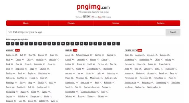 pngimg是一个国外的透明背景素材下载网站,界面很简洁,除了搜索框之外,就全是关键词了。网站一共提供了 47566+(数量还在持续增加中)张透明背景素材可供下载。