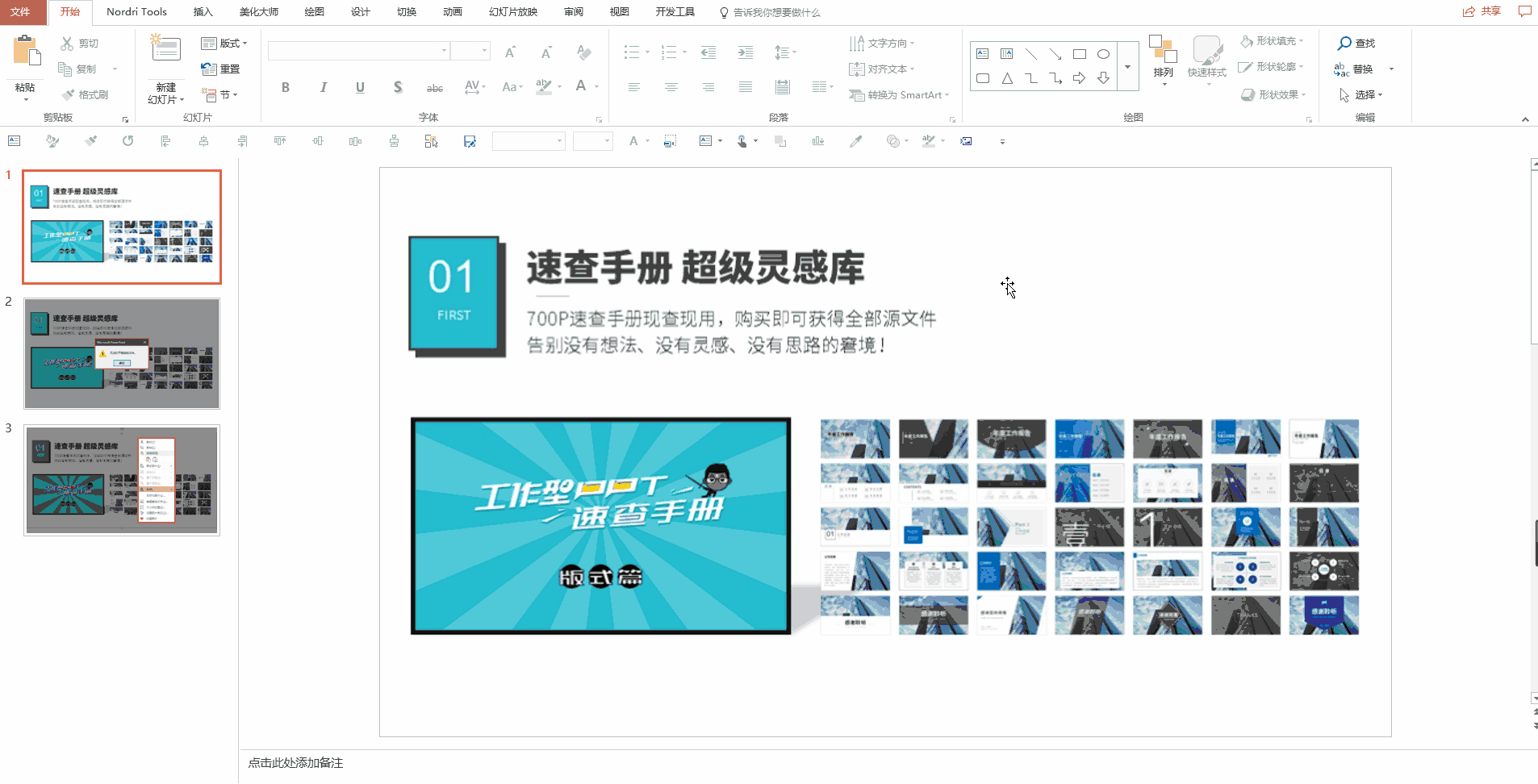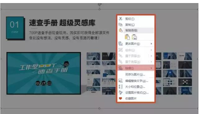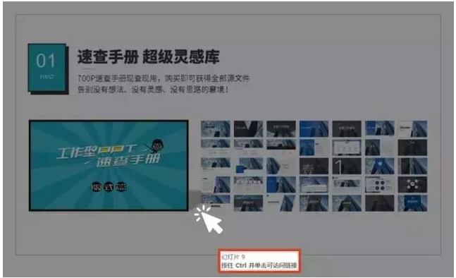 例如我们想在介绍【工作型PPT速查手册】的时候,点击图片就打开速查手册中的一份PPT。