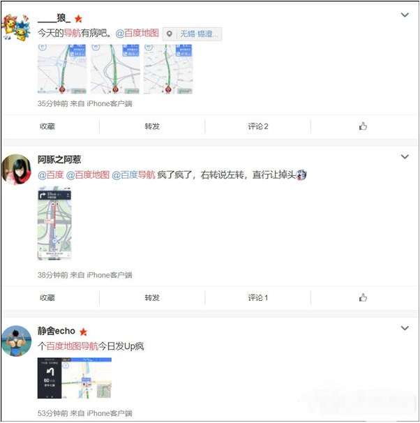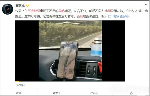 出门不认路,怎么走全靠地图,要是地图也乱了,这下就遭了,百度地图得益于百度的巨大影响力,成为很多用户的首选导航,但今天大量微博网友反映,百度地图的语音提示和地图显示信息不符,导致不少人走错了路!