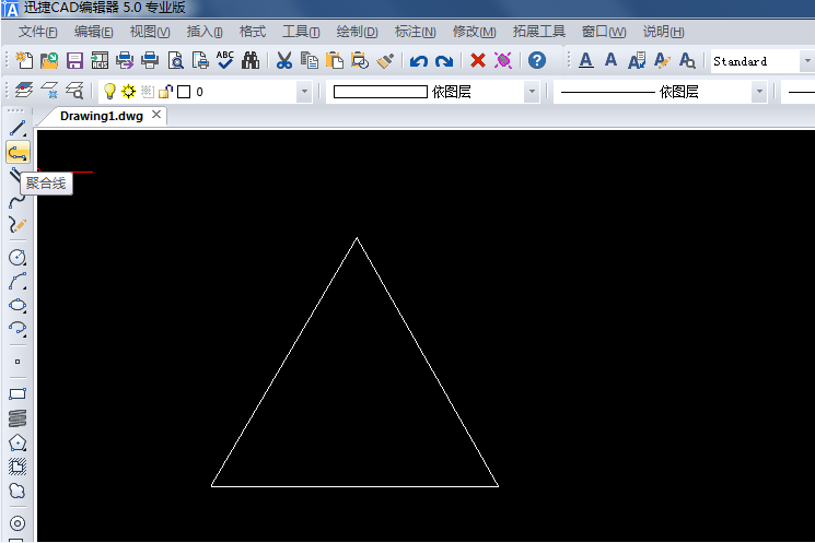 1、打开迅捷CAD编辑器,启动软件进入操作界面,在CAD中使用聚合线画一个三角形。