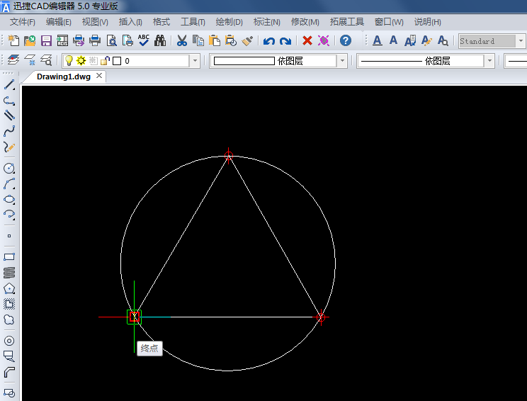 3、将三角形的三个角设置成圆形的三个点,三角形的外接圆完成。