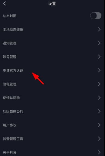 2、然后在设置页面里直接点击“申请官方认证”的功能,就可以进入其中进行实名认证和申请了。
