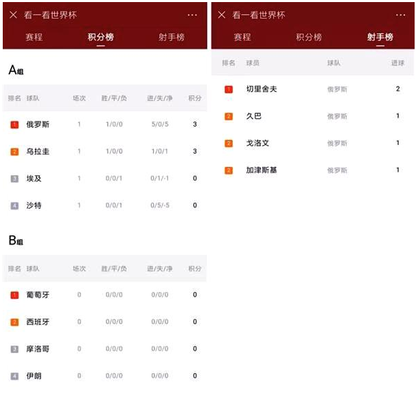 积分榜及射手榜,可让你紧盯支持队伍比分与热门球手的成绩。