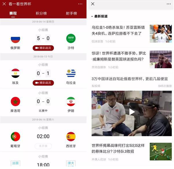 球迷们每天早上八点后都会在“看一看”收到神秘“战报小卡片”,点击进入即可实时了解2018世界杯足球赛最新消息。