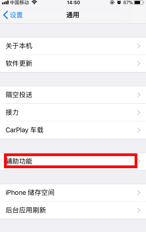 进入iPhone设置页面,打开通用选项,进入辅助功能。