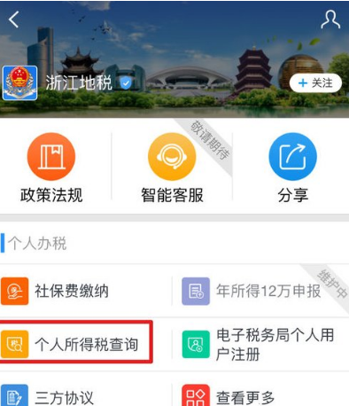 2、接下来点击进入小程序中,就可以在里面找到“个人所得税查询”的功能,从而查询个人所得税了。