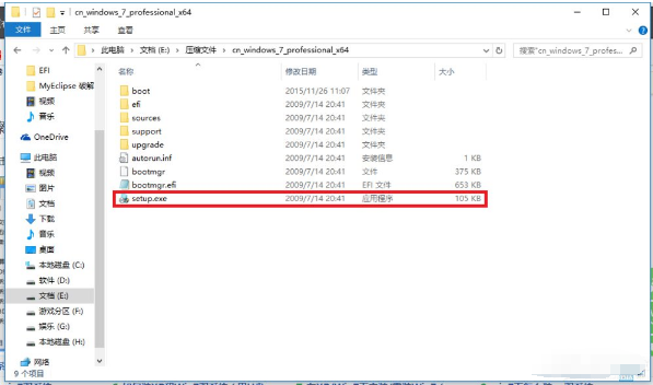 5、这里我们就可以进行安装了,点击Win7目录下的setup.exe进行安装。