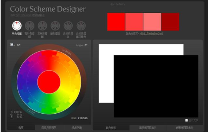 Color Scheme Designer一个免费的网络调色工具,不需注册就可使用。主要以色环的方式让使用者选择颜色,可加上六种不同的配色,让使用者可以很容易地调出令人赏心悦目的配色。