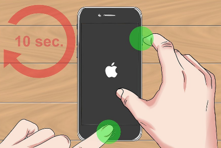 3、继续按住这两个按钮不松开。大约10秒钟后,屏幕上会出现重新启动的苹果商标,这时候才松开按键。