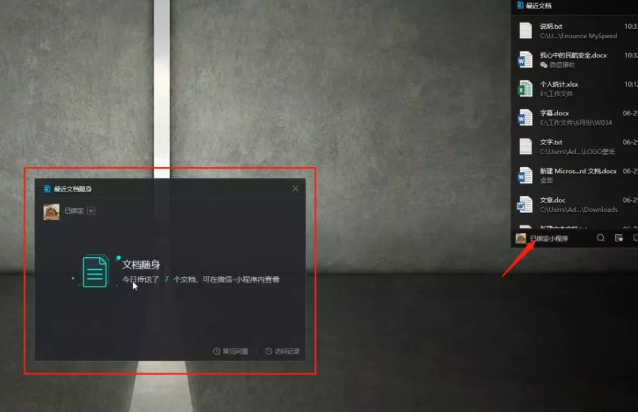 安装好之后,桌面右上角会出现一个框,这里是最近打开过的所有文档,点击下面的头像可以微信登录,配合小程序还能够无缝同步文档,非常好用。