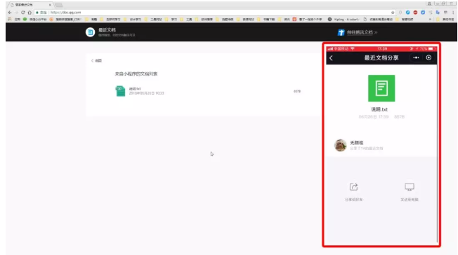 想要将文件互传的话,就记得登录doc.qq.com,在手机上用最近文档小程序将文件点击发送到电脑,就会出现一个扫码框。
