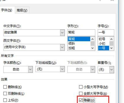 选中文本,点击[开始]—[字体]—[隐藏]。
