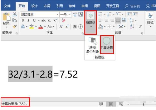 先在Word选项中,添加[工具计算]功能。选中要计算的数据后,点击[工具计算]按钮,在Word下方就会出现计算结果。