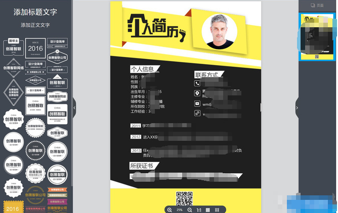 五百丁的简历都很有设计感,唯一的缺点就是不支持免费导出