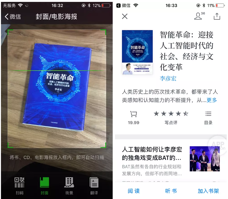 微信还可以帮助你快速获知书籍、影音的详细资料,快速带你入门。你只要扫一扫书籍和 CD 的封面,就能在没看、没听的前提下了解更多今天说说创作者以及书和音乐的内容了。