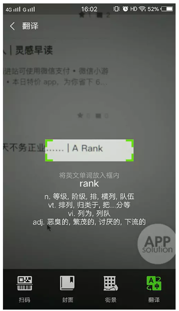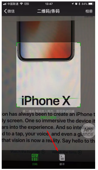微信扫一扫还有翻译功能,不过目前只支持中英文之间的互翻。