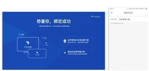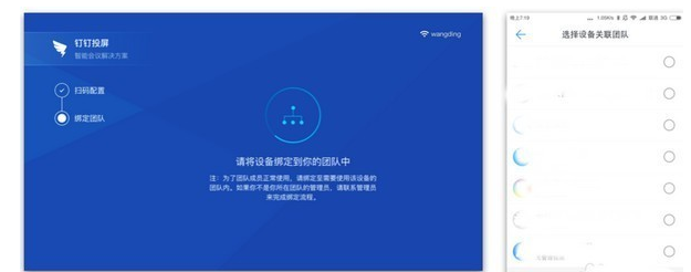 3、选择团队、完成配对,用户可以配置团队名称。完成后,点击去投屏,进入投屏界面。