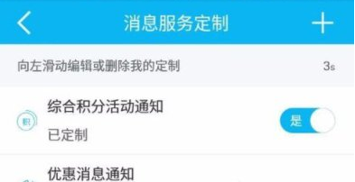 2.在下一个页面我们看到【消息服务定制】,点击以后进入下一步在下一步的【消息服务定制】右上角有一个+的符号,如图,点击进入添加服务。