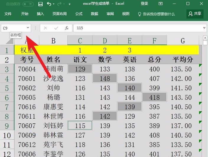点击工作表区域左上角的名称框。