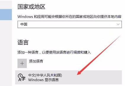 2、在打开的国家或地区界面中,进行语言的显示设置。