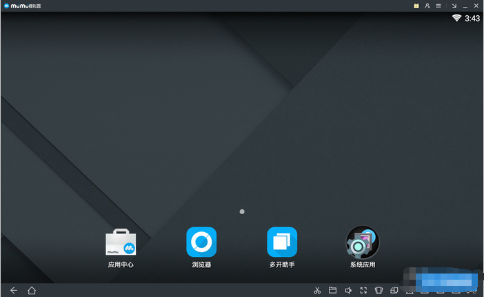 MuMu模拟器的操作也很简单,主显示区域就像手机屏幕,用户可以使用鼠标来代替触摸进行操作,左下角有返回与主页按钮,右下方则是截图,音量。摇一摇等的快捷操作按钮。