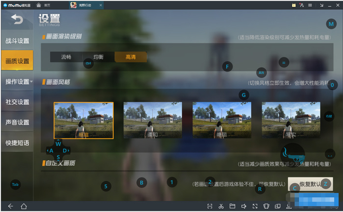 首先出场的就是《荒野行动》,这款网游的热度不用我说了,全民皆兵了。那么在MuMu模拟器中,它的表现如何呢?进入刺激战场,MuMu模拟器已经贴心的为用户准备好了键鼠映射的键位,如果你想要自定义键位,可以点击右下角的键位设置来自定义键位。
