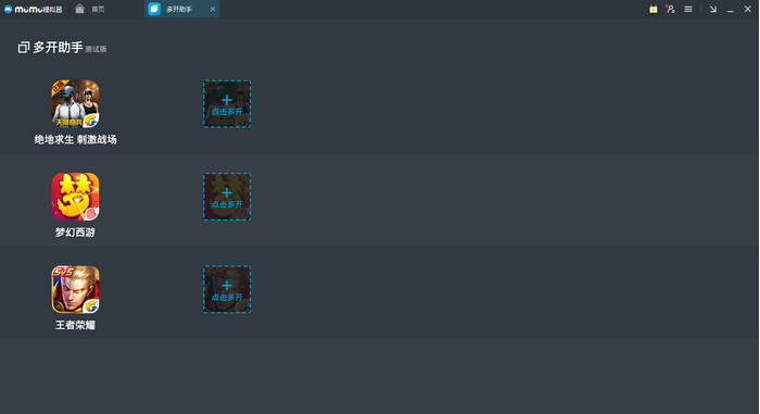 MuMu模拟器内置多开助手,可以在一个模拟器中帮助用户多开游戏。