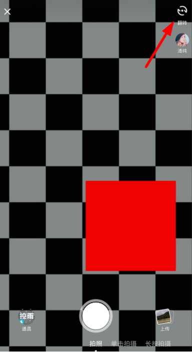 2、然后从页面的右上方选择“翻转”按钮,只有在使用正面摄像头拍照的时候才能使用闪光灯功能。