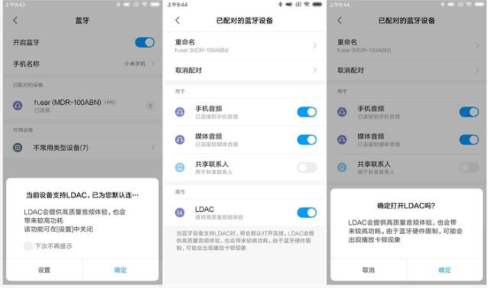以前只有索尼自带的手机以及得到索尼许可的手机才有这个功能,而这里面并不包括小米手机,就在今天,小米手机也能用上LDAC功能了。