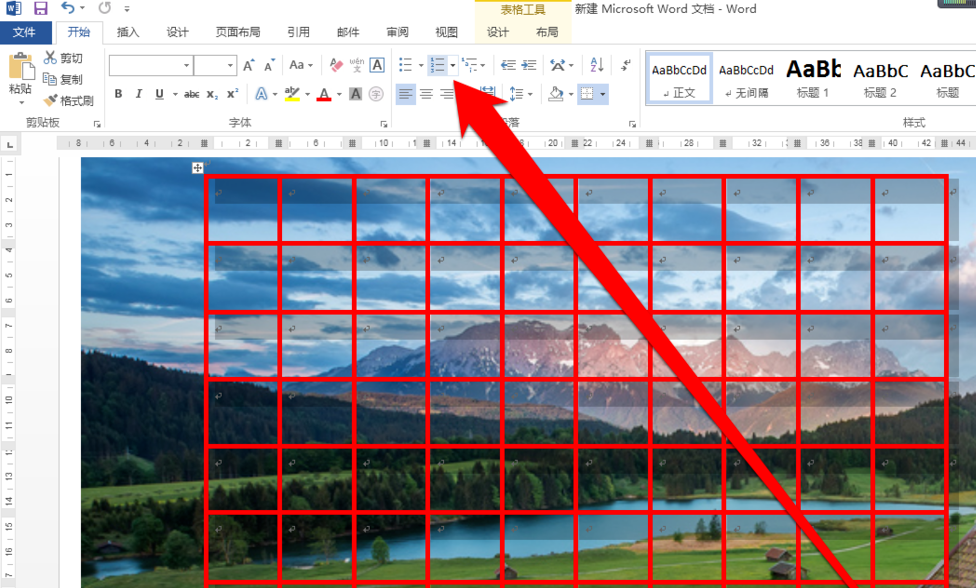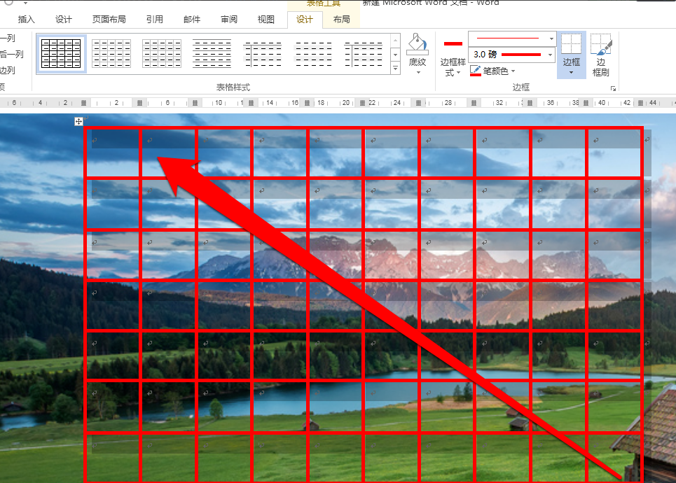 插入word表格后,点击表格上的小田子图标,选中word表格,