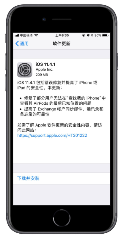 iOS 11.4.1正式版更新主要包括错误修复、并提高了iPhone或iPad的安全性。iOS 11.4.1修复了部分用户无法在「查找我的iPhone」中查看其AirPods的最后已知位置的问题,此外还提高了Exchange帐户同步邮件、通讯录和备忘录的可靠性。