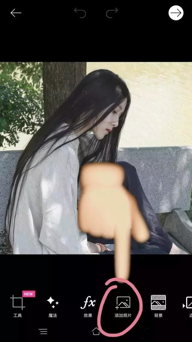 五、使用 picsArt 软件打开一张你喜欢的手机壁纸背景图片,然后点击下方的“添加图片”,然后再将刚才制作好的“姓氏文字图片”加入进来,再点击混合,之后可以进行“加亮”,调整位置等操作,直到自己满意为止。