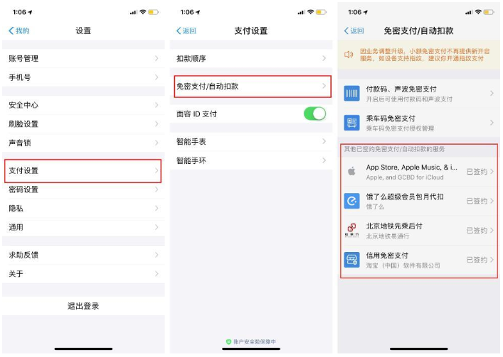 对于大部分服务,你都可以点击后在接下来的页面直接解除,例如App Store的免密支付。但也有部分服务,如北京地铁的先乘后付,只能通过相应的App进行解除。