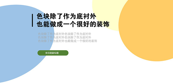 扁平化的流行带来了色块设计,最简单一种色块就是矩形,当然你也可以脑洞大开一些,将色块变幻成其他一些形状。在这里,色块既可以作为底衬,也可以作为装饰,关键就看你如何使用了。