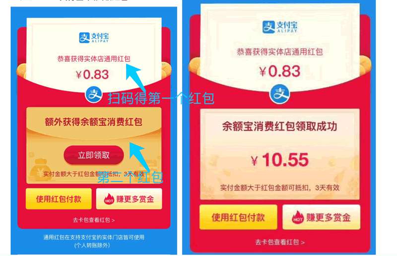 若您的账号里有多个余额宝红包(如当天扫码领取的以及消费后获得的),每笔订单只能使用一个余额宝红包,订单支付时系统将会自动使用符合的红包进行抵扣。