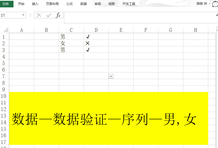 类似的内容输入很多次真的很费时,不如做一个下拉列表,点一下就搞定!选中单元格—数据—序列—男,女