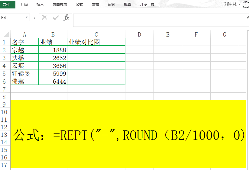 一般的数据对比没新意,试试这样做数据对比!输入公式:=REPT(\"-\",ROUND(B2/1000,0)),然后下拉进行填充即可。