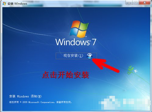 5、如图所示,这便是Windows7的安装程序,中间有一个开始安装的按钮,点击此按钮之后便开始安装系统了。
