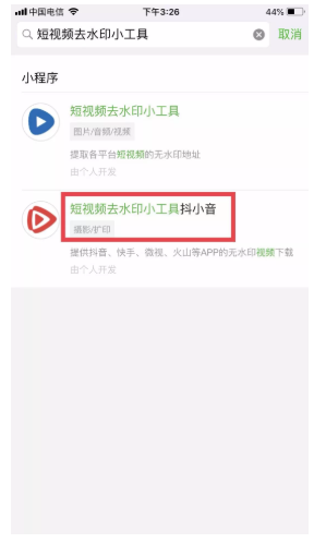 打开微信,进入小程序,搜索“短视频去水印小工具”,我们选择第二个,如图。