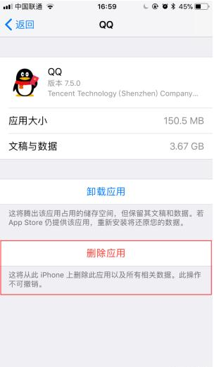正确的方法应该是“设置→通用→iPhone储存空间→删除应用”。