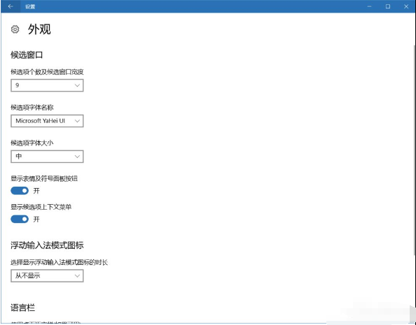 1、如果觉得这种一行一行地找不太方便的话,微软还提供了另一种办法:表情及符号面板。使用前请保证该功能已开启。顺序为设置→时间和语言→区域和语言→中文(中华人民共和国)→选项→微软拼音→选项→外观→显示表情及符号面板按钮。