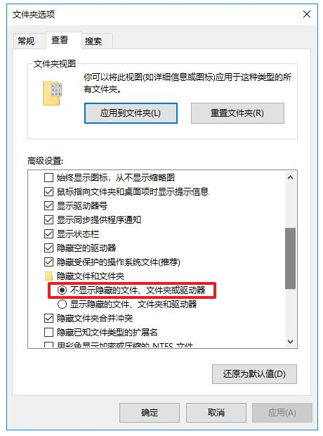使用这种方式后,记得要把文件夹选项的【不显示隐藏文件】勾选。