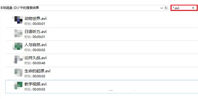 PS:对电脑小白而言很难找到,老司机们搜索框输入【*.avi】就什么都出来了。