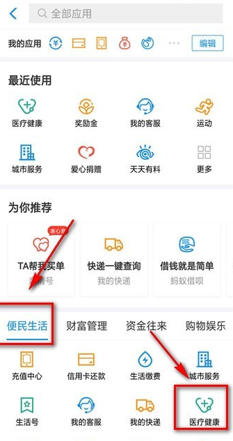 在便民生活里面选择医疗健康,