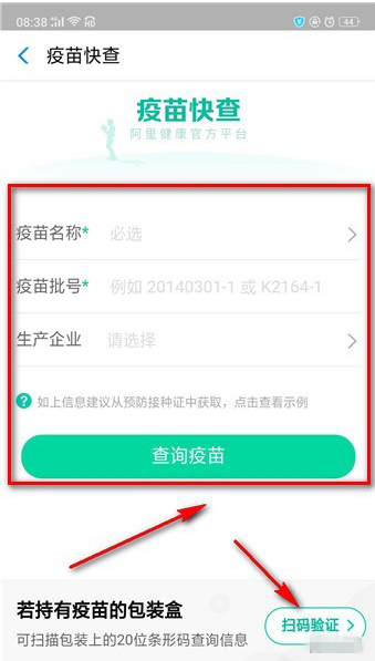 进入后可手动输入接种本上的疫苗批号进行查询,如果有包装盒可以直接扫码,