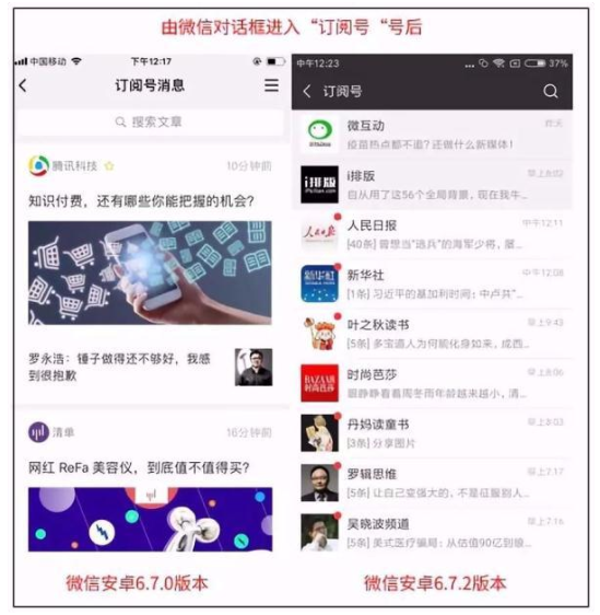 自微信6.7.0版本更新,变为信息流呈现样式以来,不少用户抱怨类“信息流”的呈现很不友好,已读和未读的信息没有区分,想要查找非常麻烦。