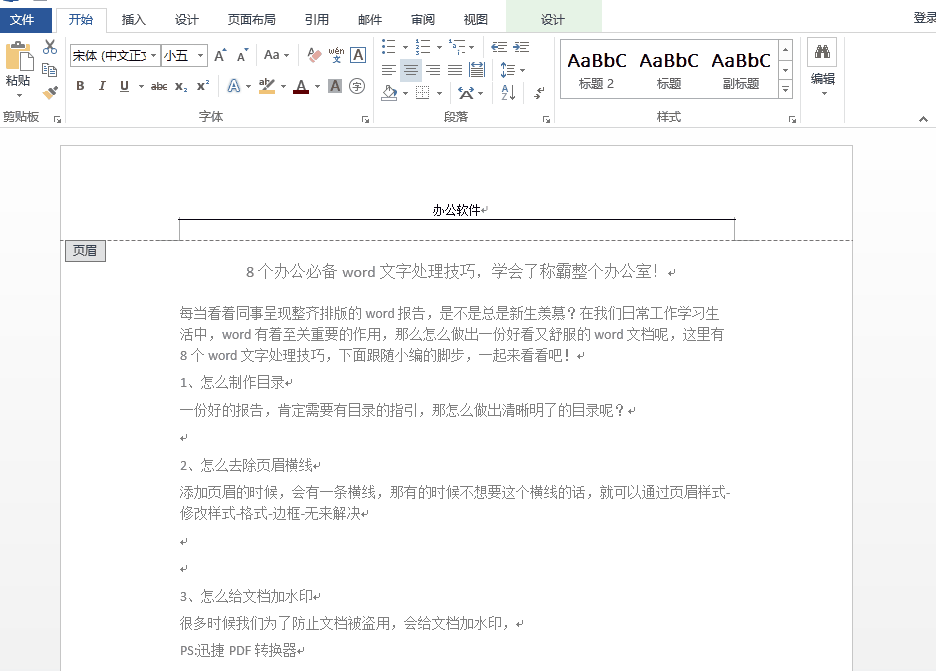 2、去除Word页眉横线