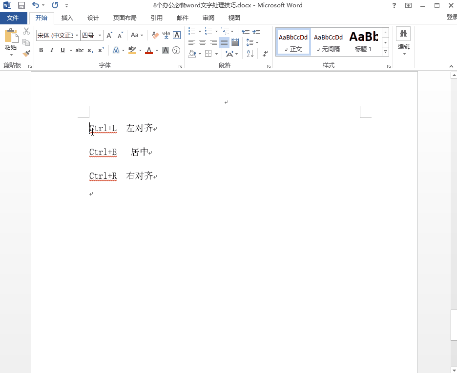 选中想要对齐的文字,使用快捷键Ctrl+L显示的文字左对齐 ,Ctrl+E显示的是文字居中对齐,Ctrl+R显示的是文字右对齐。