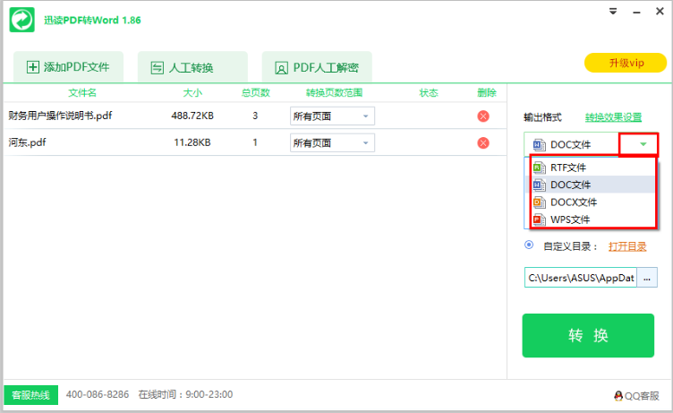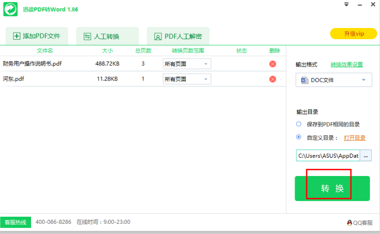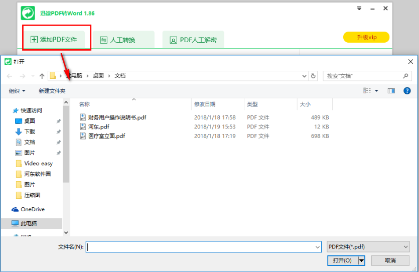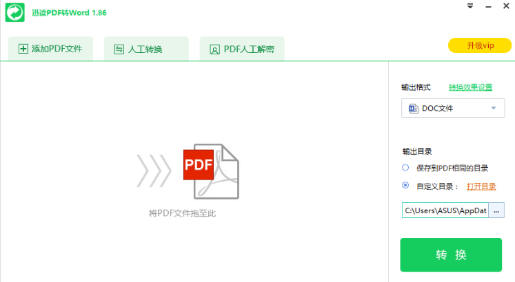 4、安装完成后,进入了如下所示的讯读PDF转Word的操作界面。