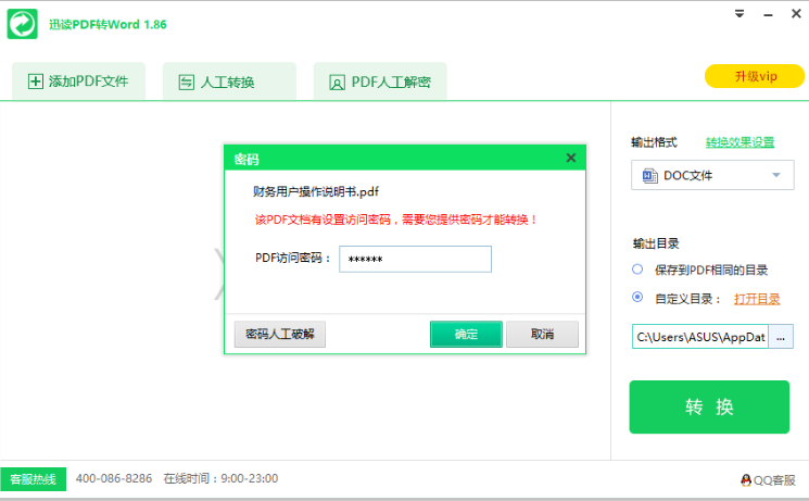 6、若用户需要转换设置密码的PDF文件,用户需要输入PDF的访问密码。